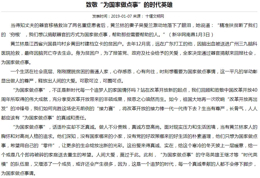 【十堰文明网】致敬“为国家做点事”的时代英雄